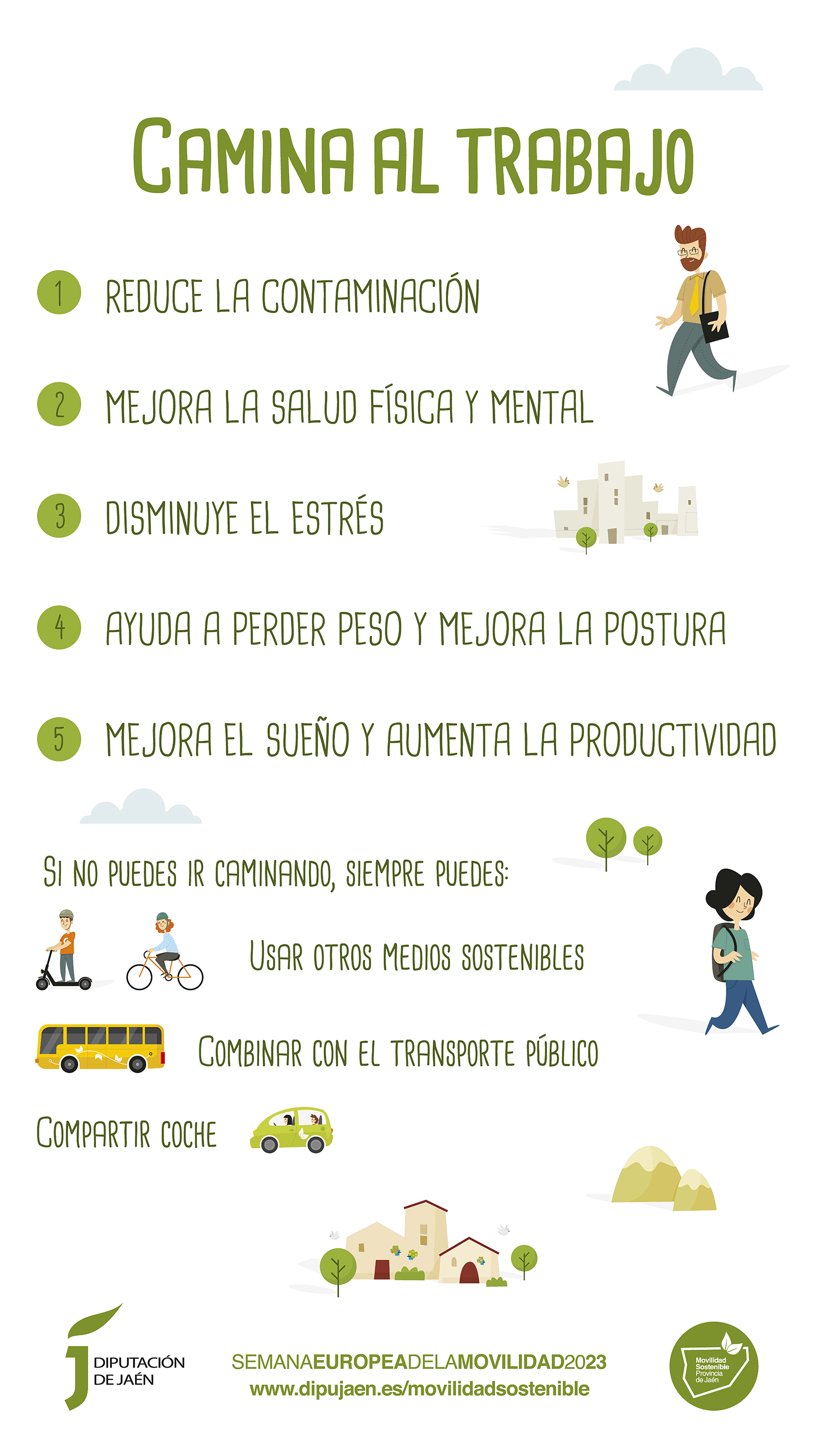 Desde Diputación de Jaén se viene trabajando, junto a los municipios de la provincia, en la sensibilización ciudadana sobre la movilidad sostenible que implica una mejora de la calidad del aire y la necesidad de reducir el nivel de emisiones contaminantes procedentes del sector del transporte, introduciendo nuevos hábitos de transporte más saludables para la población.