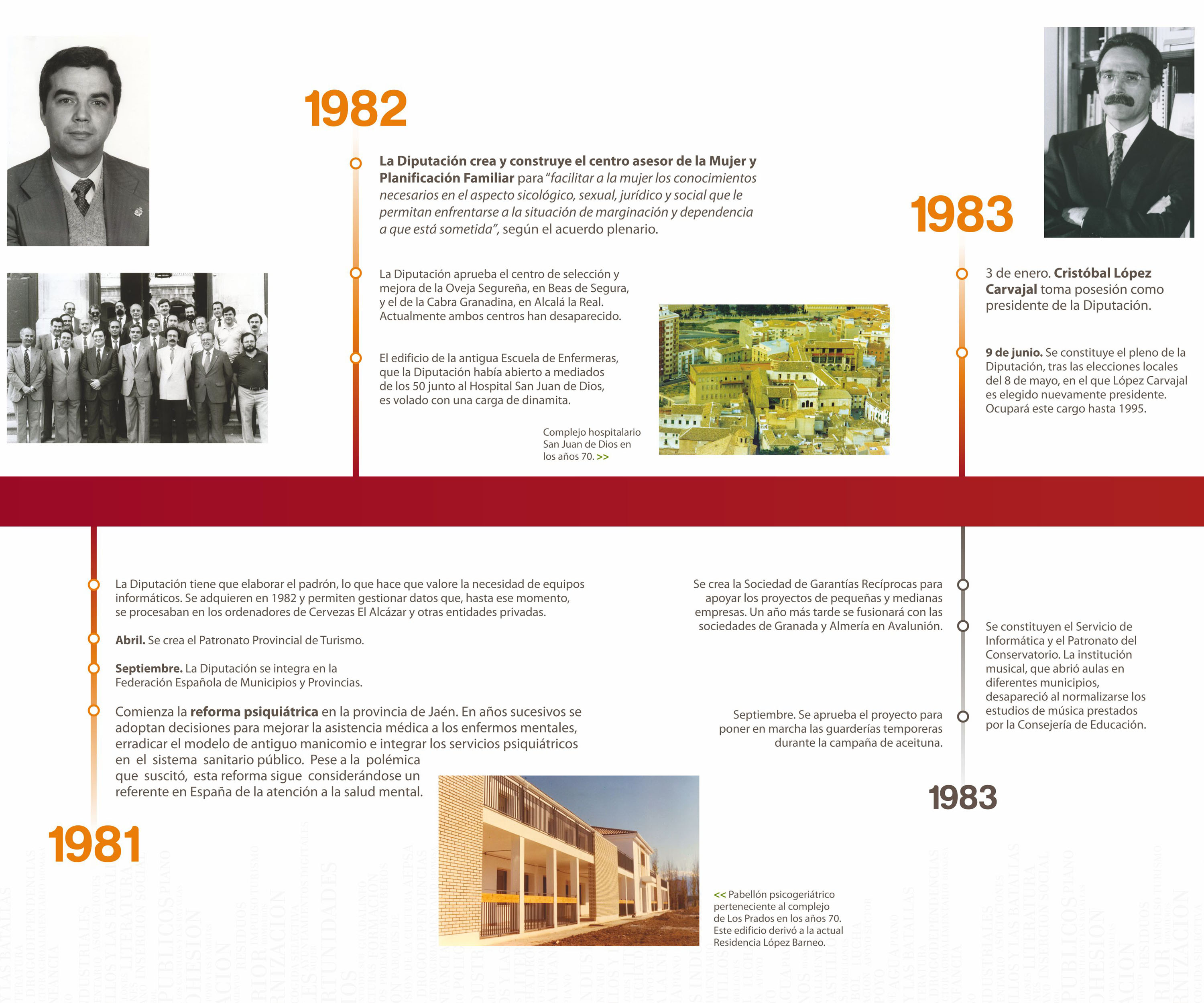 - 1983: Cristóbal López Carvajal toma posesión como presidente de la Diputación. Ocupará este cargo hasta 1995. Se constituyen el Servicio de Informática y el Patronato del Conservatorio.