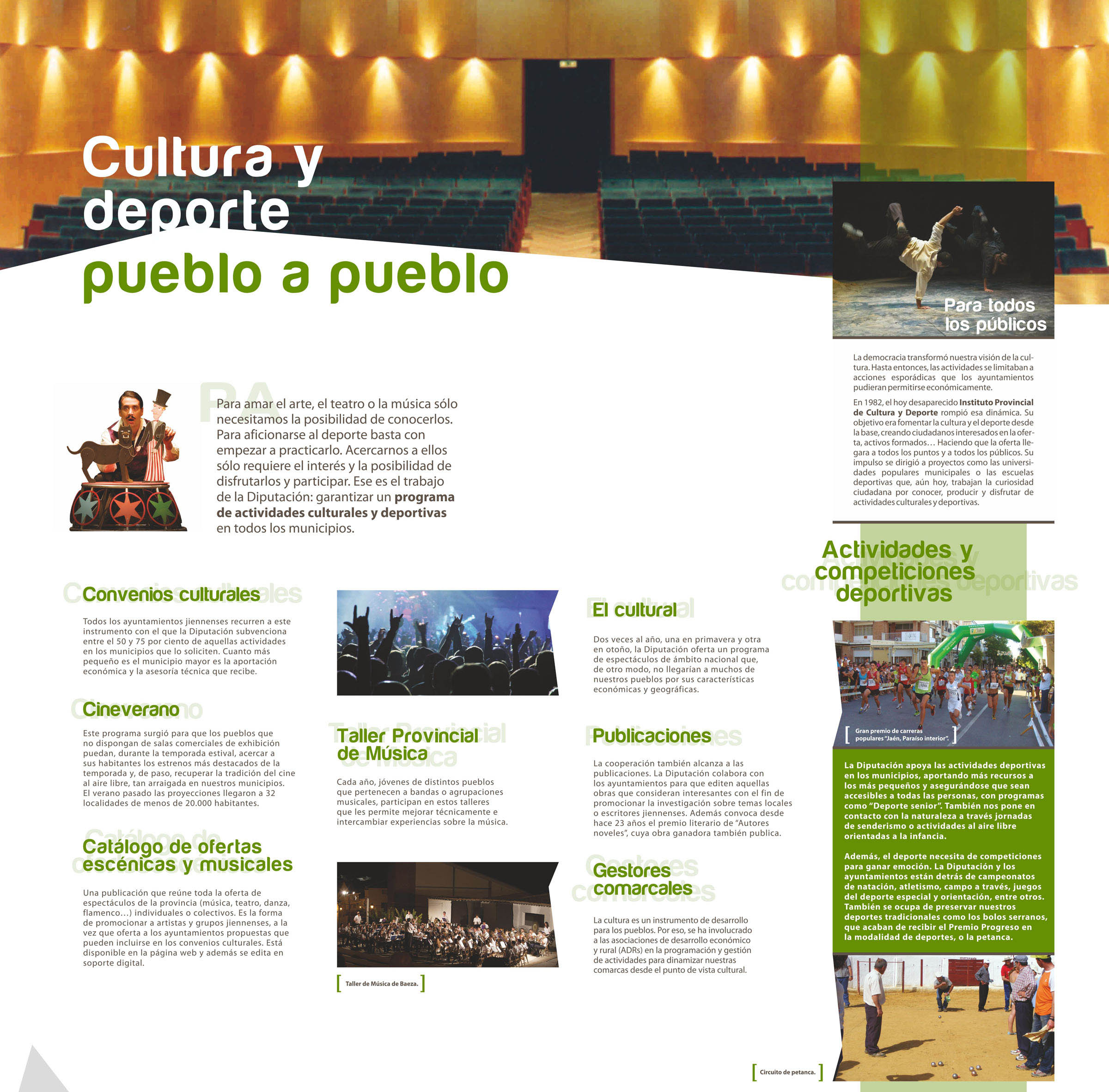 Para amar el arte, el teatro o la música sólo necesitamos la posibilidad de conocerlos. Para aficionarse al deporte basta con empezar a practicarlo. Acercarnos a ellos sólo requiere el interés y la posibilidad de disfrutarlos y participar. Ese es el trabajo de la Diputación: garantizar un programa de actividades culturales y deportivas en todos los municipios.